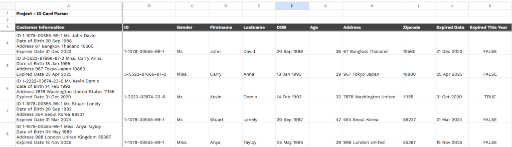 Experiment – ID Card Parser แบ่งแยกคำให้จัดอยู่ในรูปแบบตารางให้ง่ายต่อการจำแนกข้อมูล