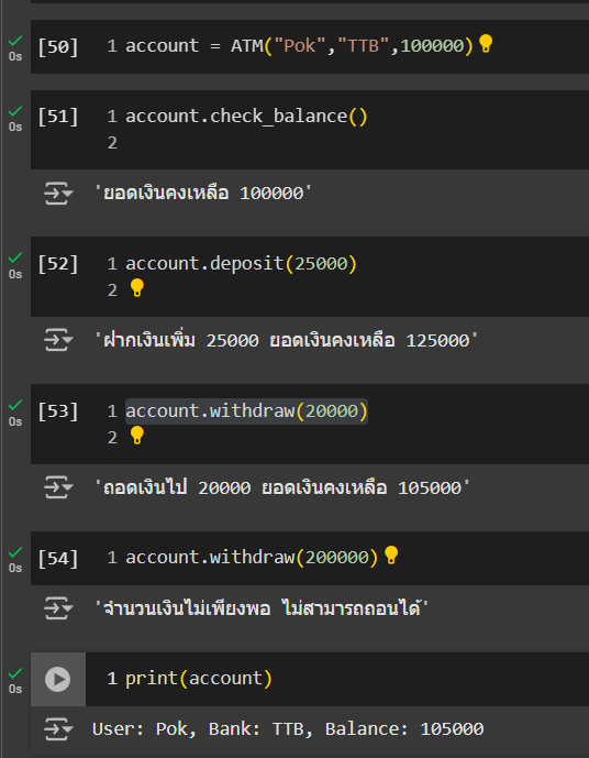 Experiment – Create OOP ATM เก็บข้อมูล User , Bank , balance / สร้างฟังก์ชัน ฝากเงิน , เก็บเงิน / แสดงข้อมูลทั้งหมด