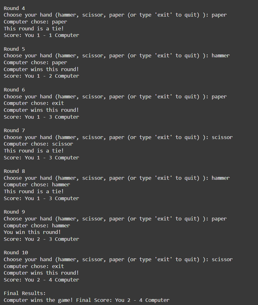 - จัดให้ bot สุ่มข้อมูลในตัวแปร hands เพื่อแข่งกับผู้เล่น